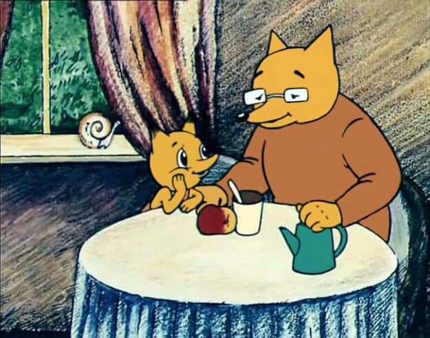 «- Как хорошо, что ты пришел, сынок! - обрадовался Старый Лис. - Я испек пирог из земляничного варенья. Будем пить чай.