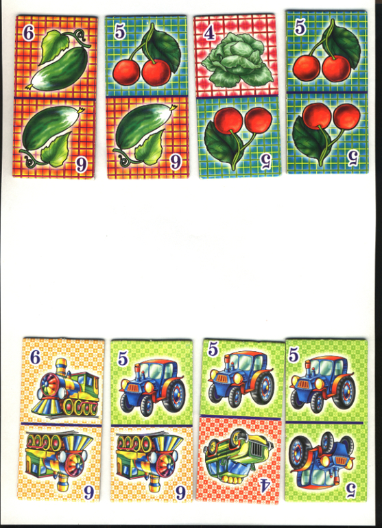 самодельные игрыМоему сыночку очень нравится играть в доминошки. У нас много разных. И с цифрами, и с машинками, и с рыбками (картонные и пластиковые). Отсканировала и выкладываю здесь сканы наших доминошек для ознакомления.