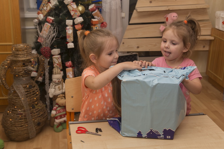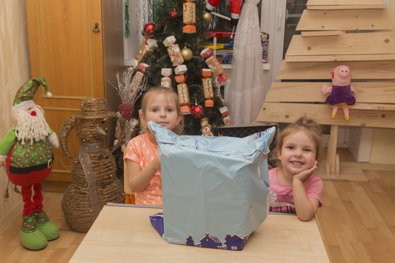 Вика спрашивает а это посылка? А откуда она? Правда Снегурочка прислала???? Давай открывать!!!!!!