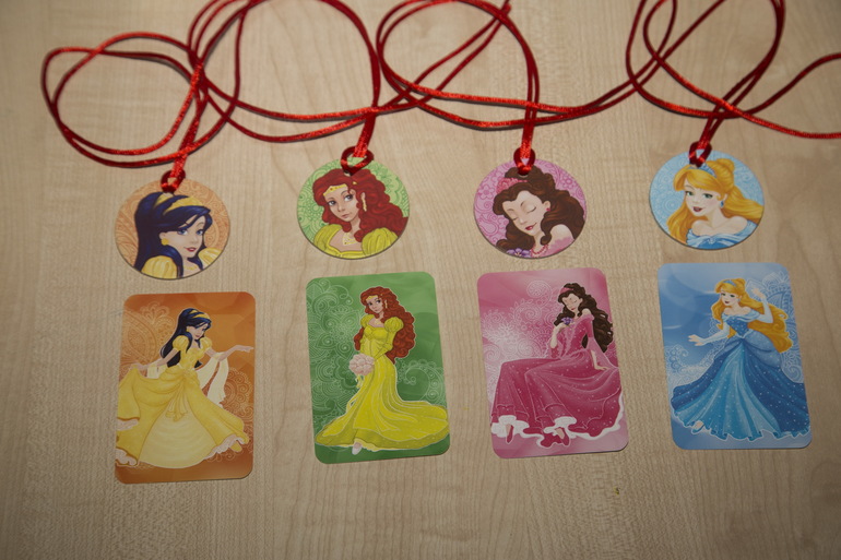 4 медальона с портретами принцесс (Перед 1 игрой наденьте каждый медальон на отдельную нитку 4 шт ниточек в наборе).