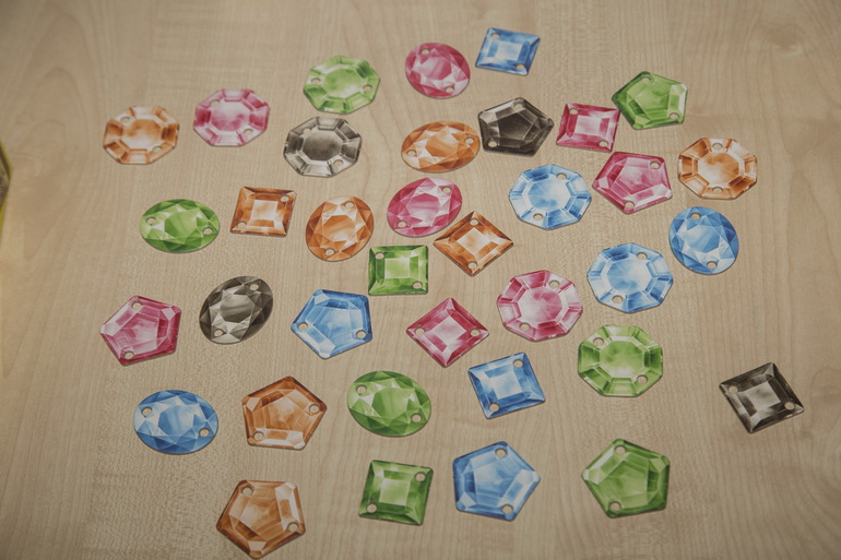 Жетоны самоцветов выложите на стол лицевой стороной вниз и перемешайте.