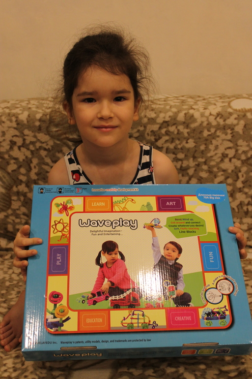 О конструкторе я узнала, что в Корее детям дают его на уроках, как развивающее фантазию пособие. Что можно сказать о нашем впечатлении? Конечно же очень понравился! Палочки гибкие, приятные на ощупь. Любые формы принимают легко. Объемные фигуры мы помогали сделать Маше, а плоские контуры хорошо скручивала она сама.