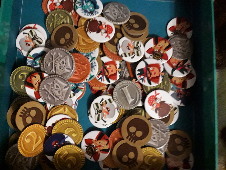 Элементов приличное количество-60 пиратов, 50 монет. Все тоже из очень прочного лакированного картона. В общем, сделано добросовестно, на века.