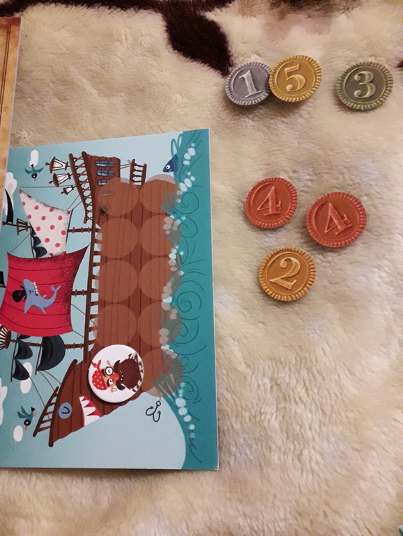 Смысл игры-двигаться по полю, зарабатывать пиастры и покупать членов команды на свой корабль за каждые 10 монет. Само количество пиратов на исход игры никак не влияет: побеждает тот, кто первым доберется до финиша.