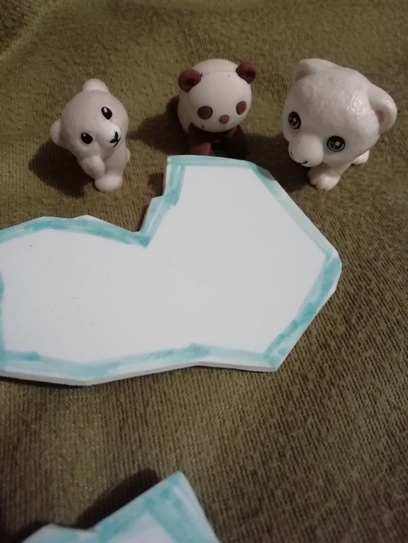 Пособирали киндеровских белых и не очень белых мишек. И вот уже папа-медведь ведет своих медвежат через льдины (а некоторые уже треснувшие) к новогодней елке за подарками.