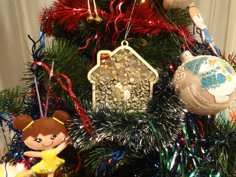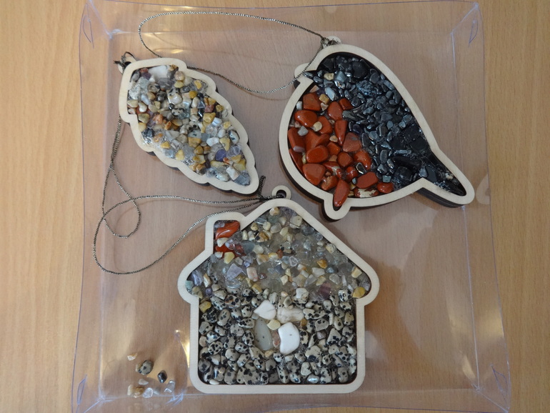 Янка любит всевозможные поделки своими руками, поэтому отнеслась к мозаике с большим энтузиазмом. Проект заполнения Новогодних формочек целиком её, муж только клеем залил: