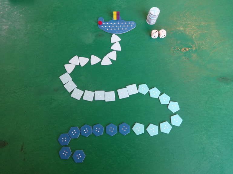 Игра совершенно меняется при увеличении количества игроков, потому что когда вы погружаетесь в океан, а потом возвращаетесь назад, вы прыгаете через своих соперников как будто их нет, не затрачивая при этом свои числовые значения на кубиках (кстати, максимальное значение на двух кубиках в этой игре шесть). Поэтому чем больше игроков, тем быстрее вы шагаете в глубину, а потом обратно.