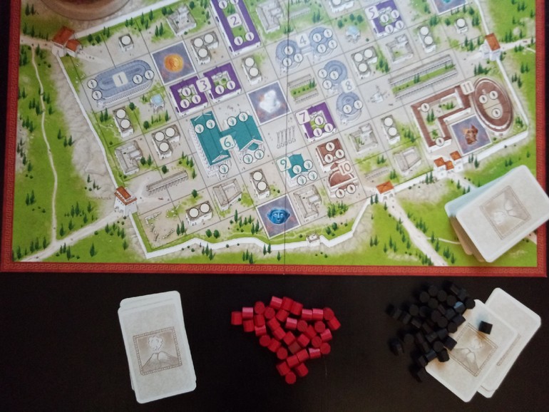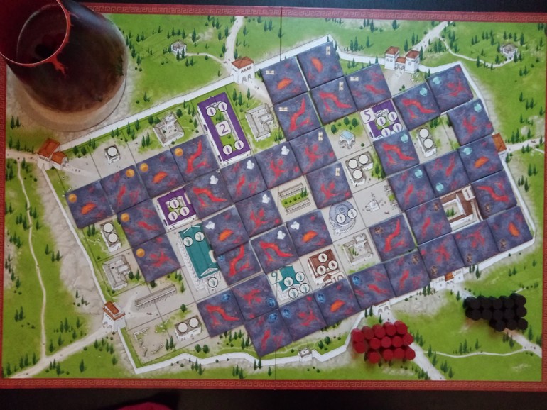 Вот и игра подошла к концу. С перевесом в одного жителя победил красный (хотя чёрный активнее заселялся и чаще вытаскивал карту предзнаменования):