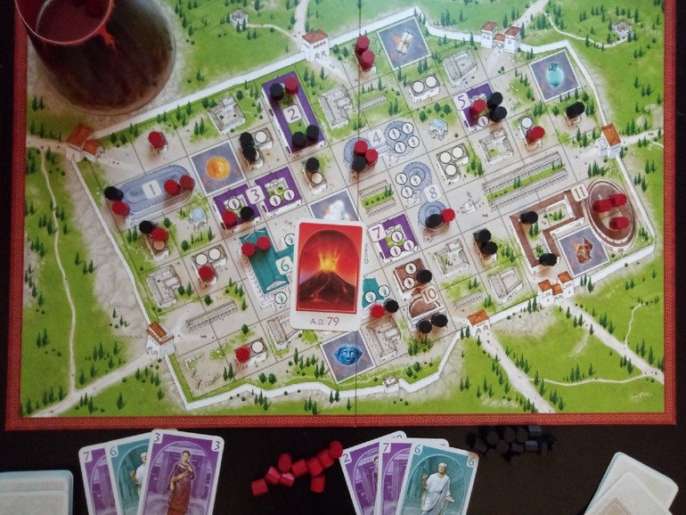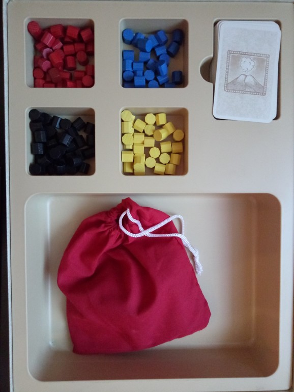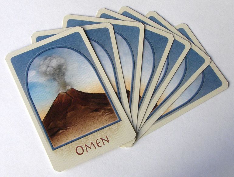 Периодически из колоды появляются карты предзнаменований, которые позволяют отправить одну из фишек своего соседа прямо в вулкан.
