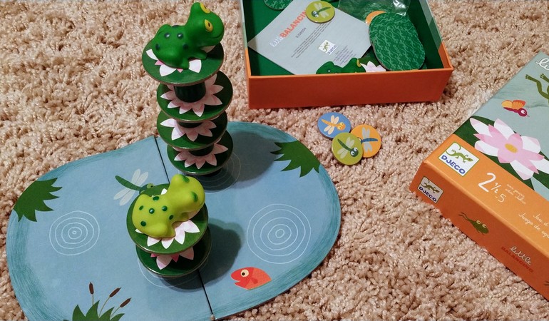 "Лягушачий балансир", Джеко. Казалось бы, простой балансир. Но когда стройка лягушачьего домика на болоте приобретает высоту, игра становится захватывающей. Я обычно грешу на кривость пола, когда этажик не выдерживает равновесия:)))