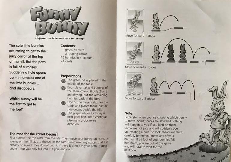 И еще теперь вопрос: прочитала оригинальные правила. По ним упавший кролик совсем выбывает из игры, а в наших написано: возвращается на старт и начинает гонку заново. Но в варианте правил на английском, получается, тоже совсем выбывает. Мы возвращали провалившегося на старт, но логичнее все же, чтоб он совсем выьывал. Кто как играет?