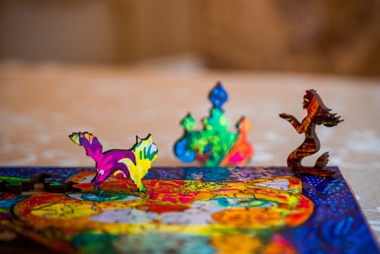 Картина-пазл из дерева Сказки Пушкина (мы с сыном сейчас учим "У Лукоморья", выпросил пазл, обещал клятвенно собирать сам),с необычными формами элементов. Взяла в озоне за 2700, правда, во многих других магазинах данный пазл стоит 3500