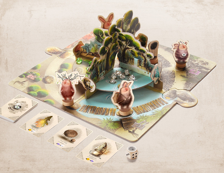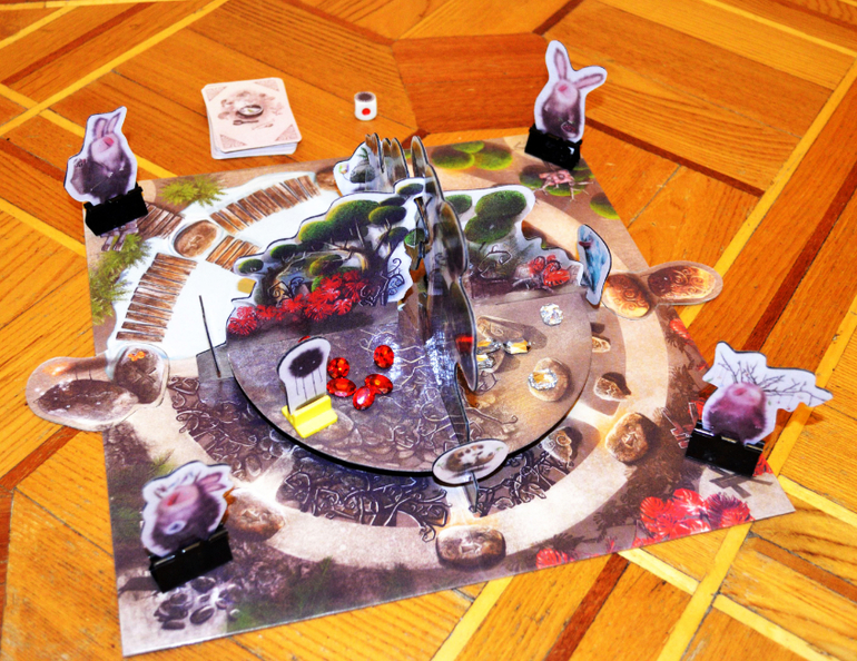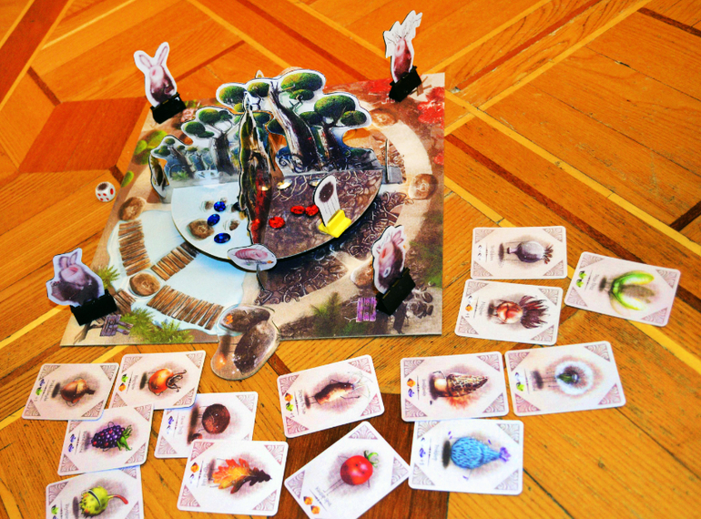 В лесу есть живые растения с глазками ( которые на карточках). Но они заболели. А чтобы их вылечить, Гю должны ходить по лесу и собирать подходящие кристаллы на полянах. А еще в лесу есть живые камни и прочие существа, у каждого из которых своя роль. Каждый из них или мешает Гю или помогает разными оригинальными способами. Игроки играют за Гю и, вроде как, выигрывает тот, кто вылечил больше растений, а с другой, есть общая цель - исцелить все до одного растения в общем волшебном лесу.