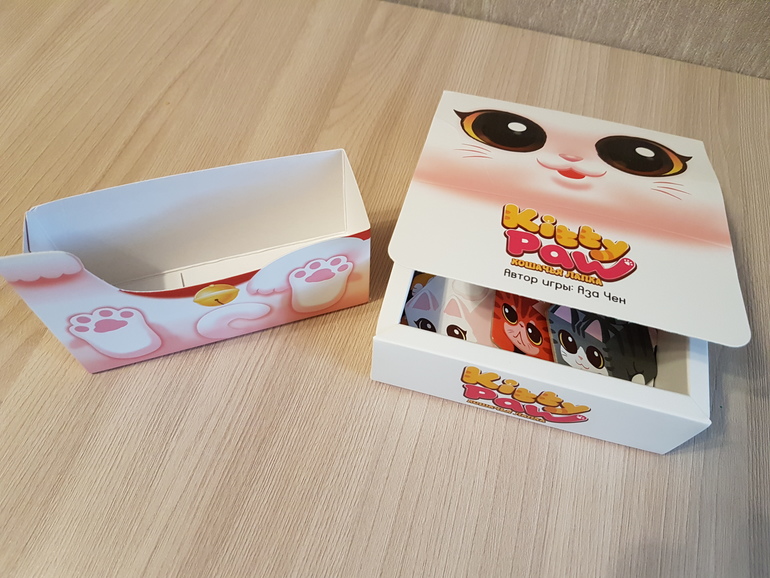 В комплекте также можно найти 4 удобных коробки, в которых котики любят спать - по одной для каждого игрока. Они двусторонние - с одной стороны коробка ориентирована вертикально, с другой горизонтально.