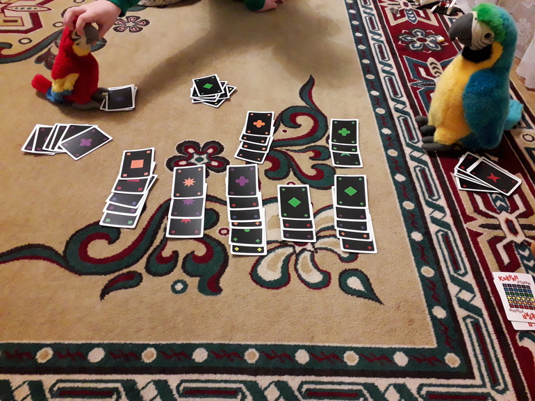 К слову, классический вариант qwirkle сыну понравился, несмотря на всю громоздкость конструкции. А вот мои бесконечные подсчёты ему не нравились, он без конца меня торопил. Конечно, он видит, куда положить, и ему всё равно, сколько очков он за это получит.