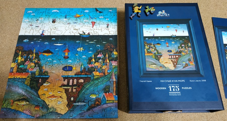 По поводу сложности. По мне сложность примерно такая же, как и обычных пазлов. Детали мы также подбирали по цвету и картинке.