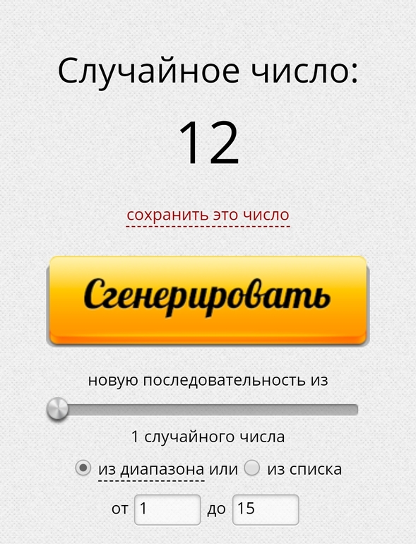 Во флешмобе участвовали 15 человек. Призёра выберем генератором случайных чисел (т.к.большинство при обсуждении условий отдали голос в пользу рандома).