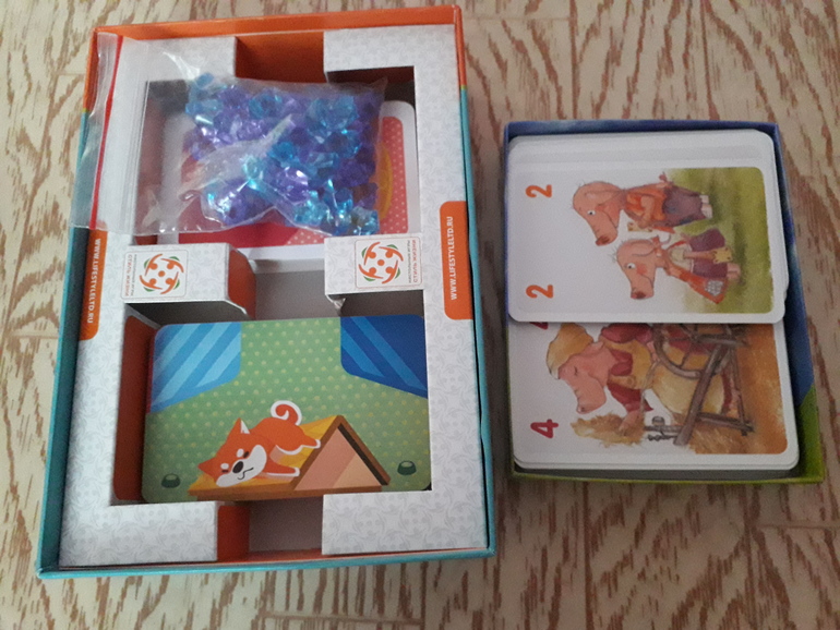 В августе, когда купили "10 свинок" и принесли домой, я не могла объяснить, как в неё играть. "Эээ, в общем, кладёшь карты и складываешь, чтобы было 10". "А как складывать?" Начала объяснять, как это, складывать. "Вот есть 6, ещё 4 после шести отсчитываешь и получаешь 10". Конечно, не с этой игры бы надо начинать путь в математике, однако она научила Саню складывать. Оказалось, ему это неплохо даётся и ещё нравится. Сейчас бы, наверное, я взяла что-нибудь легче для начала, но тогда игра закончилась во всех магазинах, где есть бесплатная доставка в мой город, поэтому увидев её в Москве, я, не раздумывая, купила. Для начала-не советую, но для более "продвинутых" математиков игра классная.