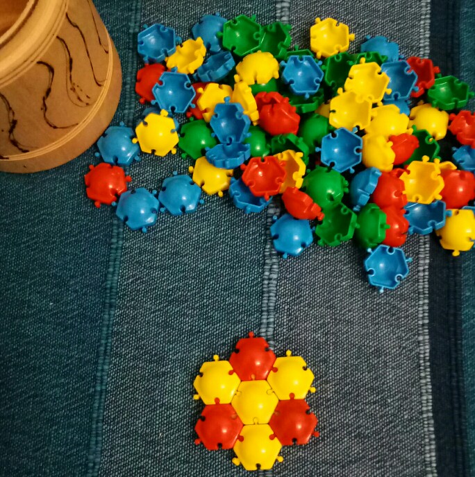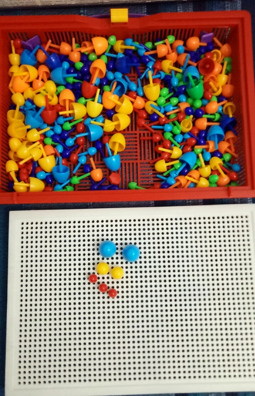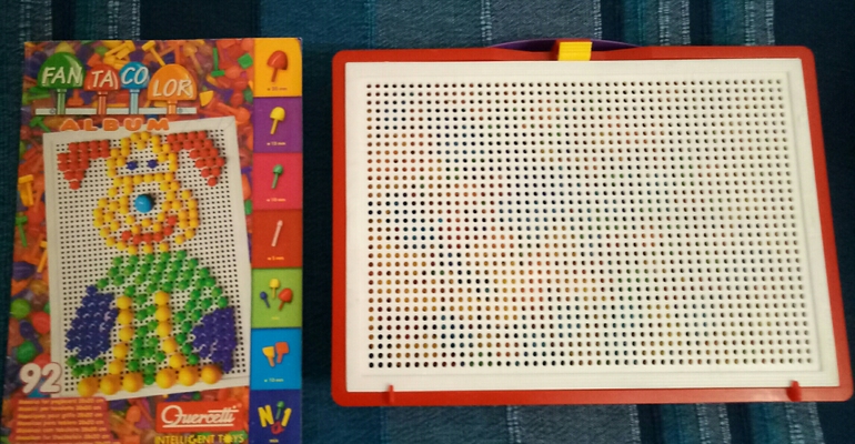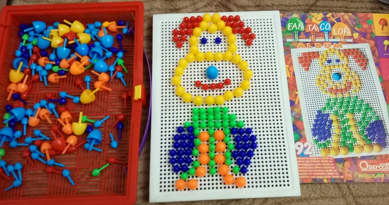Очень любимая старенькая пластмассовая мозаика в чемоданчике Guercetti, еще дочкина