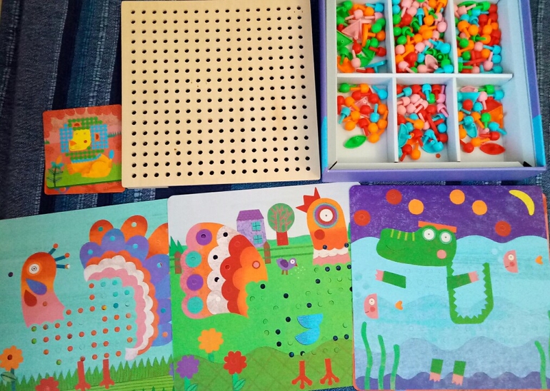 Очень долго я думала насчет мозаики Plan Toys, но так и не решилась, но деревянную крупную все таки хотелось, и я выбрала от Радуги Кидс