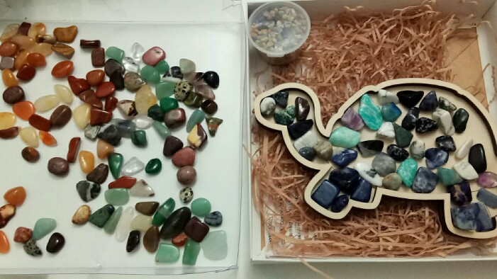 Один раз приклеить и все) но сыну пока так рано, поэтому мы просто выкладываем каждый раз по разному более крупными камнями