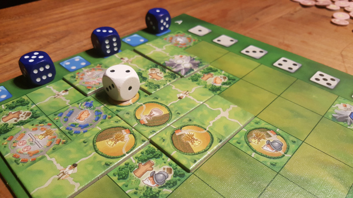 Во вторую очередь, это совмещение вроде мало совместимых вещей - одной стороны тут "пасьянс" цветет и пахнет - все только и делают, что выстраивают собственные планшеты, но при этом присутствует крайне высокая конкуренция за .... абсолютно всё - и тайлы хорошие могут увести из-под носа и нужные кубики и на треках обогнать, в общем, бодрит:)