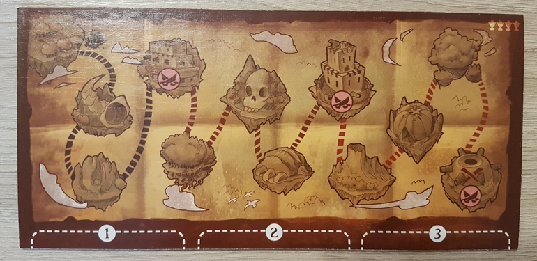 Затем на остров отправляется второй капитан, также просматривая стопки карт и выбирая себе первую, вторую или третью стопку (не взял сразу первую, пошел смотреть вторую - все, первая уже недоступна). Как только каждый из игроков побывал на острове, корабль на поле "летит" на следующий остров - начинается второй раунд, который проходит точно таким же образом.