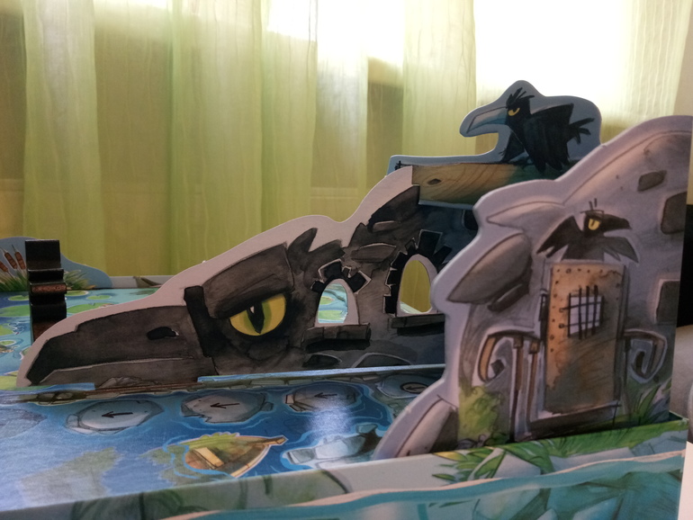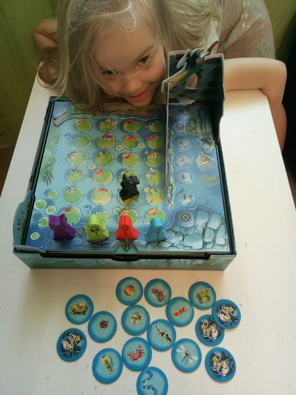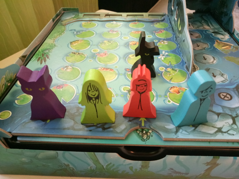 Правила очень простые: двигать можно любого героя по вертикали или горизонтали. Чтобы победить, надо всем добраться до безопасных деревянных мостков. В начале хода игрок открывает магический жетон, который пригодится на заколдованной кувшинке. Затем передвижение. В правилах момент хода описан так: герой может передвигаться, пока не остановится на заколдованной кувшинке. Так вот, если останавливаться раньше (на незаколдованной), то это даёт дополнительные возможности для следующих ходов. Как правильно, мы так и не поняли. Определенно легче выиграть, если не торопиться двигаться вперед. Колдун ходит, когда все фигурки не могут двигаться или если открыт жетон с изображением колдуна. Тогда вынимается пластина с одного края игрового поля и вставляется с другой стороны. При этом все фигурки передвигаются назад, а колдун вперёд. Игра понравилась в итоге.