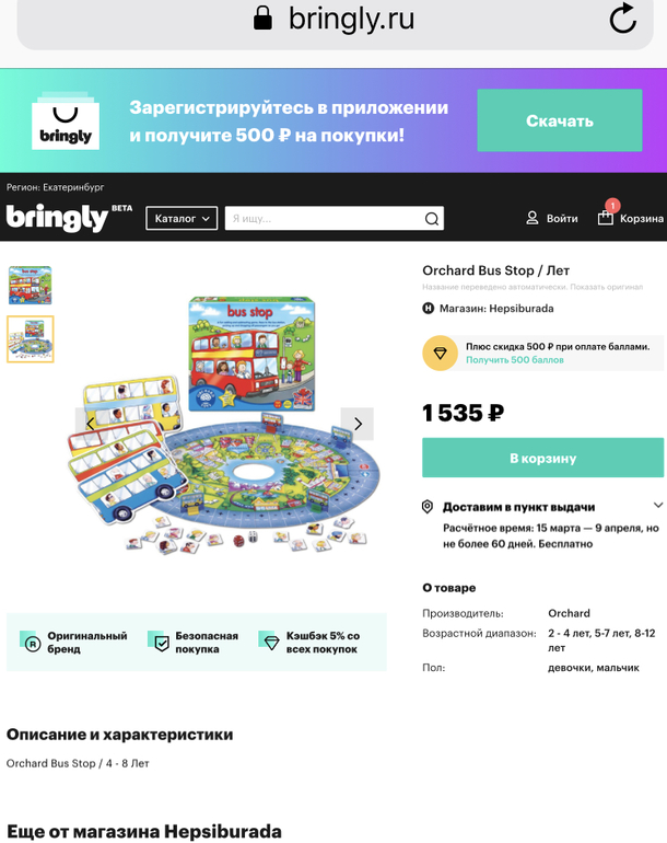 Я скачала приложение на телефон,дали 500баллов.. эта игра выходит 1035. Только не поняла про доставку.