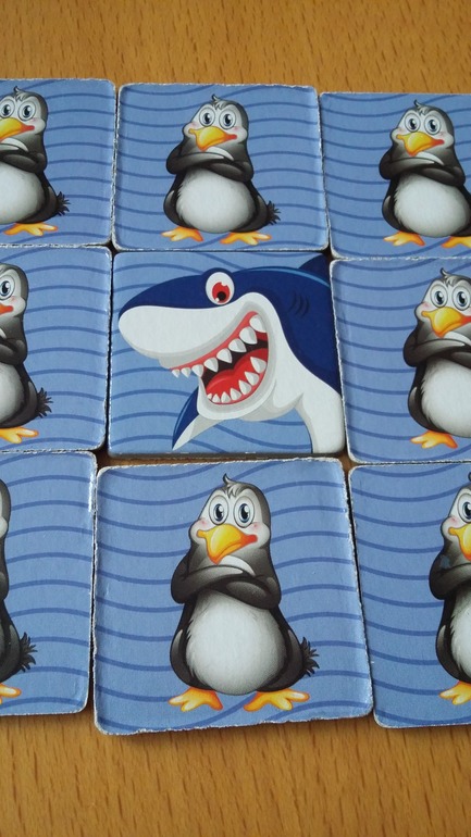 Но внимание! Вместе с рыбками в океане прячутся и зубостые акулы. Будьте осторожны! Если игроку попался жетон с акулой, он должен вернуть пойманную им рыбку обратно на поле на любое свободное место и поставить на гего пингвина. Жетон с акулой необходимо перевернуть обратно.