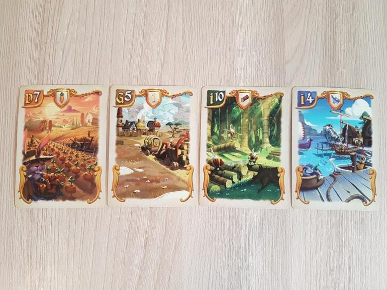 Фаза исследования: мы просматриваем каждый свои 12 карт, оставляем себе из них две (выкладываем перед собой на стол), остальные карты передаем соседу слева (а сами получаем карты от соседа справа, который тоже выбрал уже себе 2 карты). И так все игроки по кругу, пока не кончатся карты на руках - это и есть драфт (вдруг кто-то еще не знает). В чем его сложность и прелесть? В том, что бывает трудно выбрать 2 карты. Иногда хочется взять больше (потому что все дадут какие-то возможности), не знаешь, что выбрать - поставить кроликов на поле, взять город, лагерь или вообще оставить себе свиток, который принесет очки только в конце игры (и часто лишь при выполнении определенных условий к концу партии).