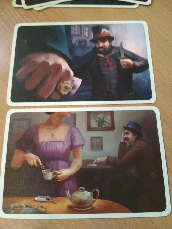 Некоторые удалось (как мне кажется) определить верно. Склоняюсь к версии, что первая карточка - месть, вторая ревность.