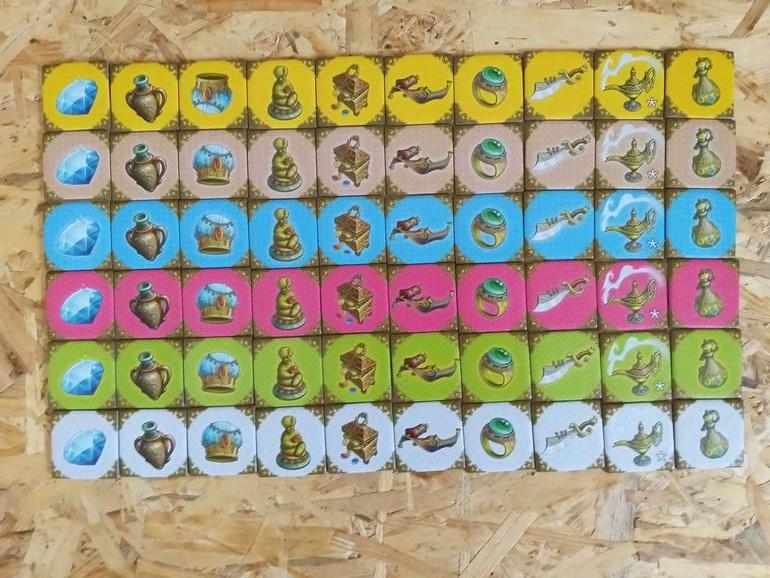 Бежевый - 2 очка за каждое сокровище этого вида, которое есть уже за ширмой. Этот тоже учитывается. Я сначала собирала форму, а потом брала этого цвета. Таким образом, увеличивала очки. Дети хватало его сразу.