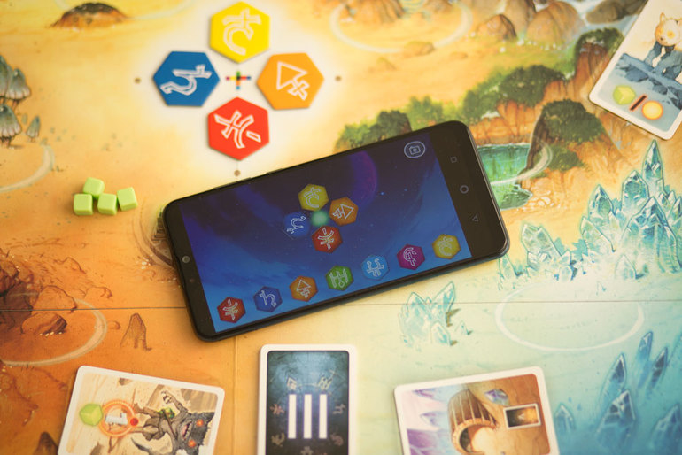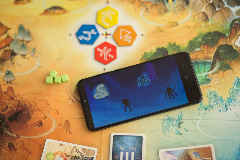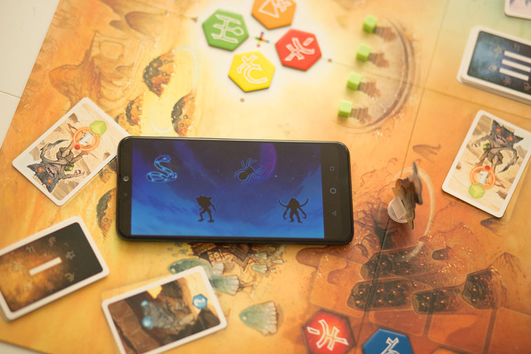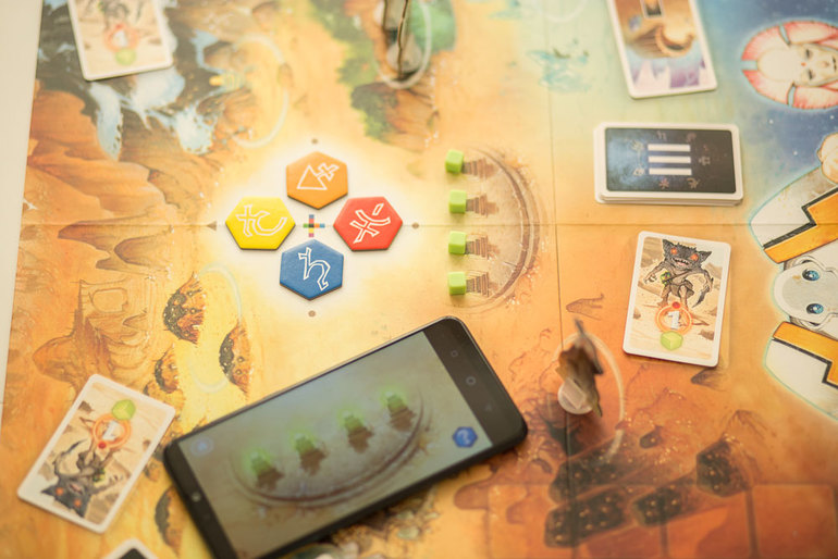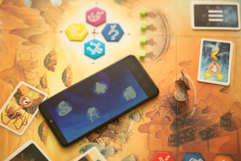 - Тайник с артефактом. Также очень полезный контакт, который позволяет взять из колоды артефактов карту и применить ее в любой момент игры. Артефакты дают возможность поднять счетчик затмения луны, взять дополнительные энергетические кристаллы, воспользоваться подсказкой (спросить у приложения, какой символ соответствует интересующей вас руне) или перебросить кубик.