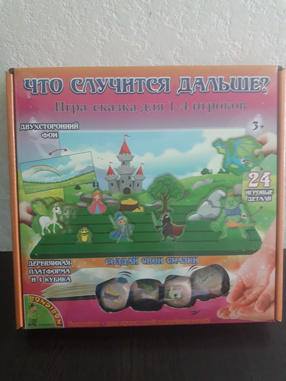 Я как-то по смешной цене купила от бондибон "Что случится дальше?". Но мы еще не играли. Я тебе пофоткала, может идея понравится. Качество отличное, кубики большие, фигурки двусторонние, хочешь направо идут, хочешь налево поворачивают. Основа деревянная.