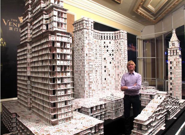 Какие у вас отношения с карточными играми? Много коробочек с колодами в шкафу? На постройку вот такого хватит?