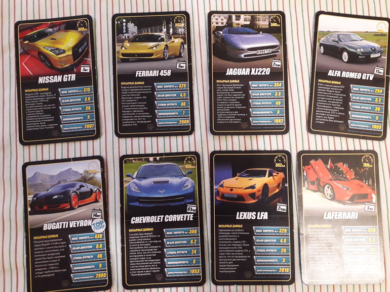 Сбоку на главном фото-игра с машинами по типу "пьяницы". Выбираешь характеристику, называешь, если показатель лучше, чем у соперника-забираешь обе себе. Играется часто, даже с бабушкой и дедушкой. Они предпочитают играть с внуком в самые простые игры.