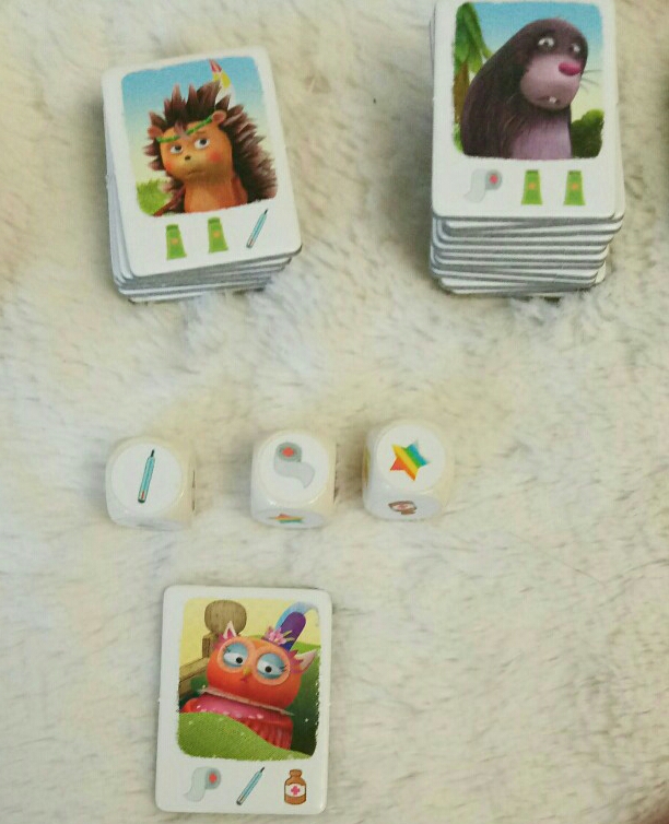 В свой ход кубики можно бросать три раза. Мой ребенок делает это с особым усердием, и в кулачках трясет, и дует, и что то приговаривает, вообщем, шаманит по страшному) Игра нам очень понравилась, для нас очень атмосферная получилась) и самое главное, это тоже подарок ! И поэтому обе эти игры нам особенно дороги!