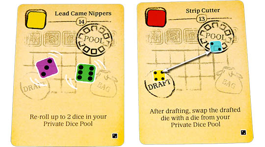 А ещё появляются новые личные цели игроков. Победные очки тут начисляются за кубики, выставленные соответствующим узором.