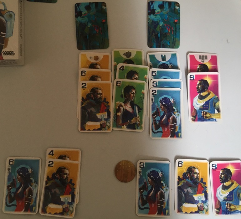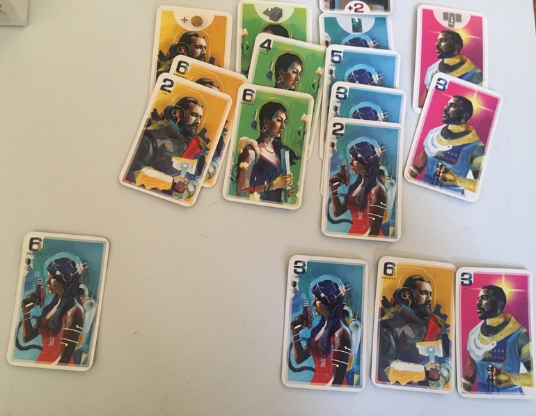 Наша задача выкладывать карты в столицу, а также создавать свой собственный город ( точно также выкладывая карты перед собой), но в конце игры сумма карт одного цвета в вашем городе не должна превышать номинал карт этого же цвета в столице, иначе Вы потеряете карты этого цвета, они уйдут в сброс из Вашего города. А именно карты в Вашем городе приносят победные очки.