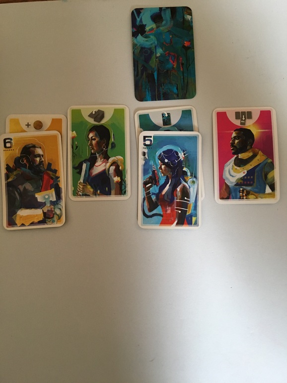 Синяя карта ( агент) - необходимо взять и посмотреть верхнюю карту из стопки модификаторов и положить её рубашкой вверх над одним из столбцов карт в столице. Таким образом Вы можете уменьшить или увеличить общий номинал карт столицы того или иного цвета.