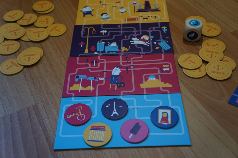 Нам игра очень понравилась, первые дни играли постоянно. Для удобства, мы жетоны с достопримечательностями выкладываем на последний плашет.