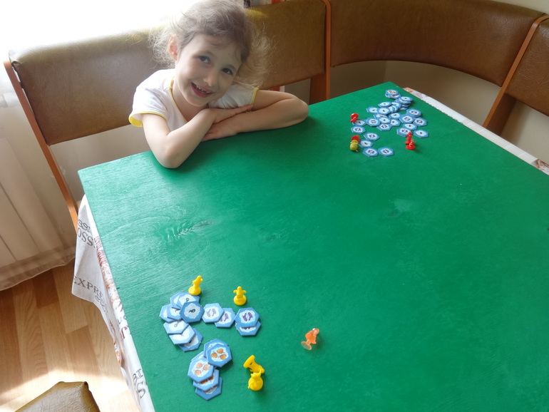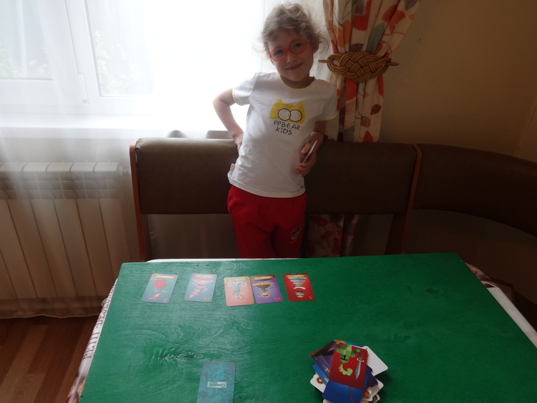 Сначала пошло туговато, всё- таки сказался перерыв в играх, последний месяц дочка совсем с нами не играла. Но потом ничего, разыгрались, и в конце турнира Янке даже захотелось продолжить, но после 4- х часов уже надоело мне). Надеюсь теперь будем играть почаще.