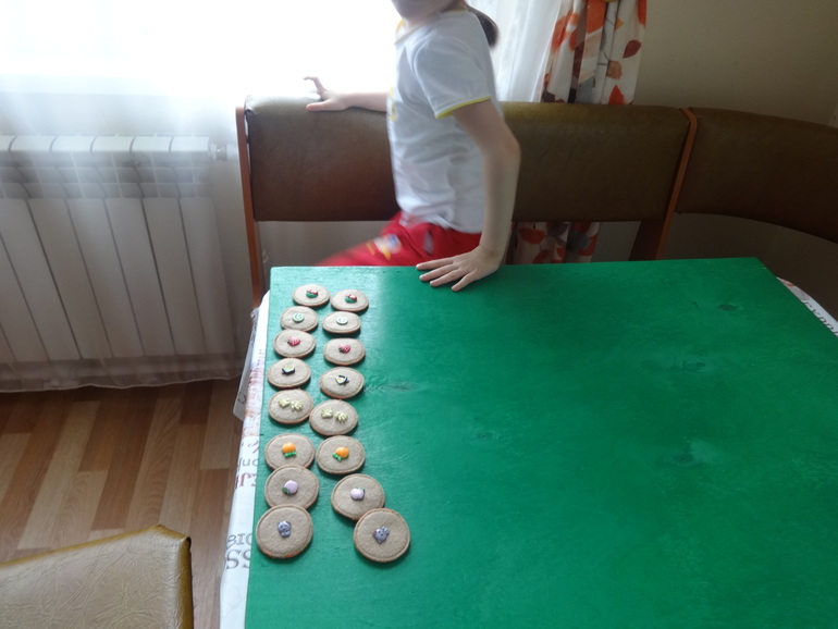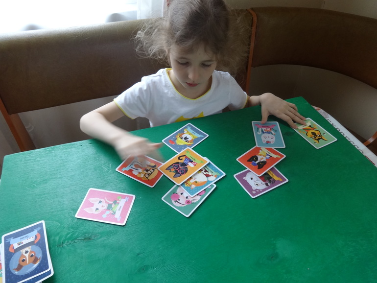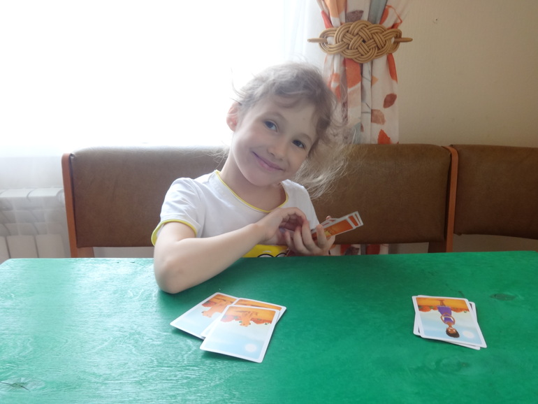 Несмотря на большое количество самых разнообразных игр, дочка не забывает и про обычное мемори, просто нравится ей. Мама под конец турнира не хило так уже устала, поэтому Янка выиграла с ошеломительным перевесом, собрав себе все пары. И побежала звонить хвастаться отцу по телефону: