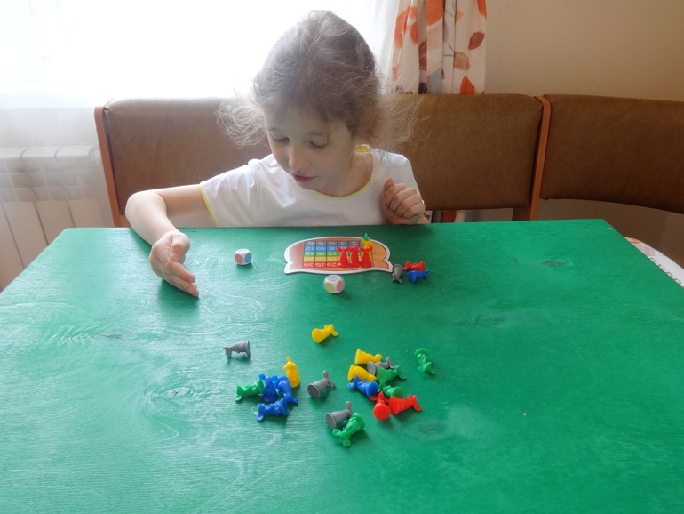 Победила я, кубики были на моей стороне, дочка расстроилась: