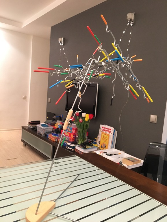 Устанавливается опора и на неё вешаем крючки. Получается примерно так.
