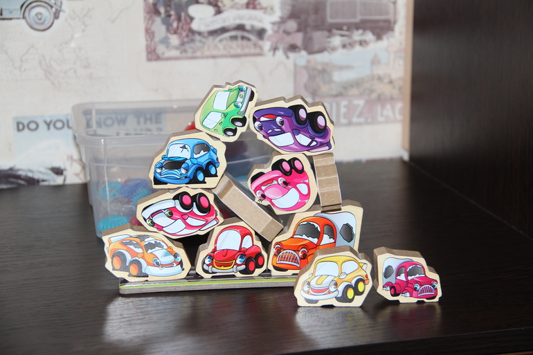 Оригинальная коробочка не сохранилась, игра живет с некоторыми другими в контейнере. Сынуля обожает её, всегда пытается собрать пирамиду только разбитой стороной машины. Игру к покупке не планировала, хотя неровно дышу к балансирам, а сын к машинам, но на какой-то распродаже за 200 р она сама ко мне в корзину запрыгнула и очень даже не зря.