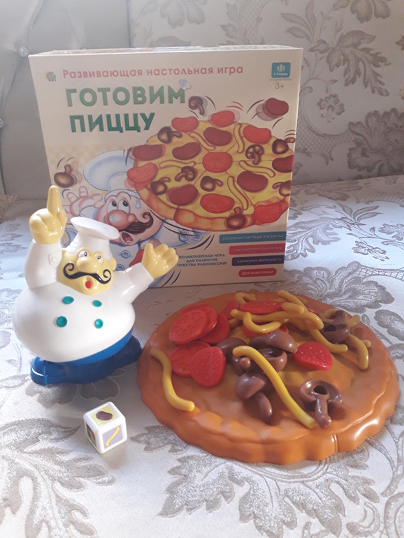 Это просто ужас, а сын со мной не согласен. Последние дни игра бьет все рекорды, эти резиновые овощи даже на кухонном столе побывали. Как вы догадались, на повара цепляется блюдо и согласно выпавшему значению кубика надо разместить овощи на этом блюде. Я это не умею((