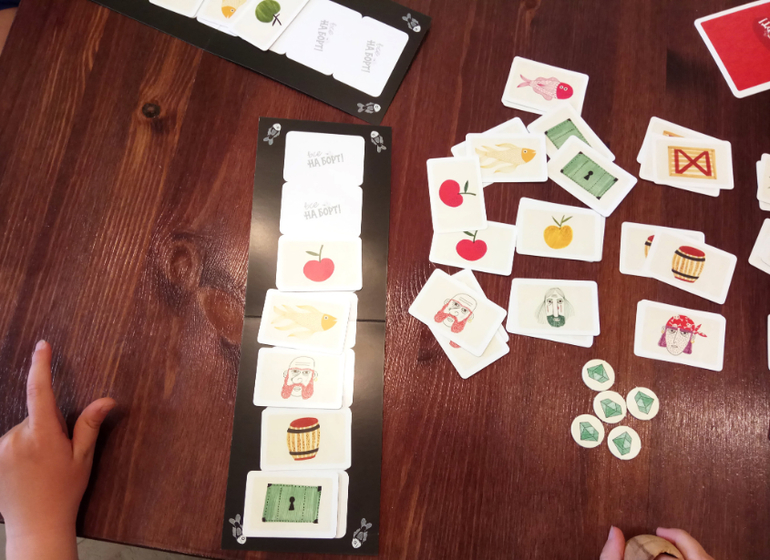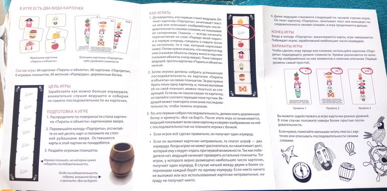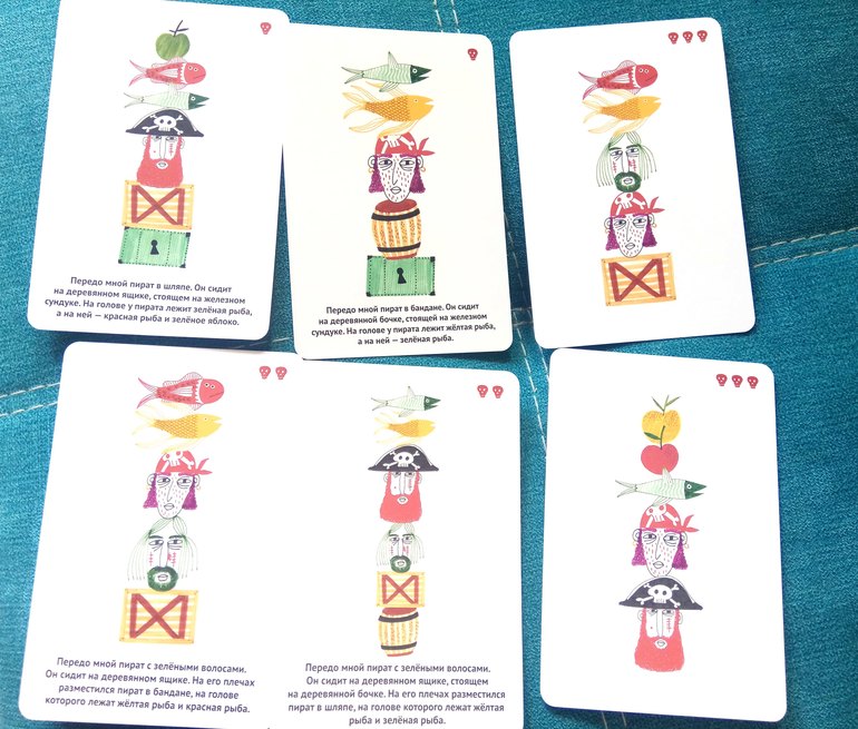 Принцип игры: ведущий зачитывает последовательность картинок, игроки должны правильно выложить ее карточками.