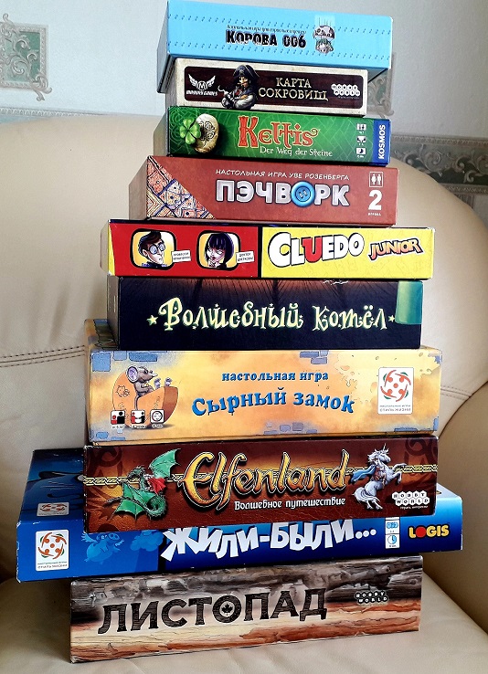 Ещё про мелочь на самом верху стопки скажу пару слов. В "Кельтис" играем давно. Я даже решила назвать игру игрой года 2018. Сейчас чуть реже, но до сих пор нравится. Есть всё-таки в её простоте азарт. Рискнуть или не рискнуть? Взять то, что есть, или подождать?